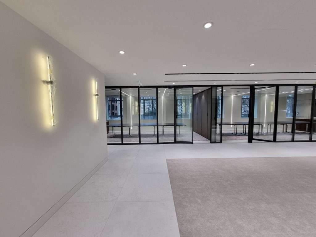 This included the installation of distribution boards, small power systems, lighting fixtures, and advanced lighting control solutions. Additionally, mechanical power supplies were integrated seamlessly into the design. The project’s electrical infrastructure was carefully planned and executed to meet the high standards and demands of a modern financial office, ensuring a functional, efficient, and high-performance workspace.